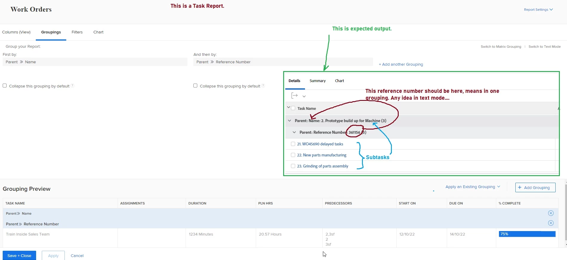 Merge two grouping in Task Report