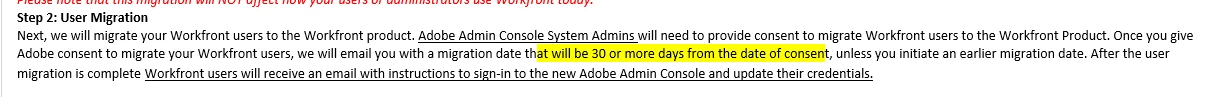 We worked through our migration and tested it in our Preview environment. It works, but the extra screens are annoying to click through. To make it even more of a challenge, now our Creative Cloud apps are tied to the "Personal account" login and Workfront is tied to our "Company or School Account." This only affects a portion of our users, but for those users it's definitely confusing to log into one account for your CC apps and the other for Workfront. This also screwed up by Experience League profile, my Workfront ExL profile got tied to my personal account (which really isn't personal!), so if I want to check the commuity for Workfront help and saved posts, I have to log out of the Workfront App. I'm trying to get this fixed, but when I opened a Workfront support ticket, they said they couldn't help and to contact Adobe support. When I contacted Adobe support, they told me they couldn't help and to contact Workfront support (@jon_chen any ideas on how I can get this fixed?).