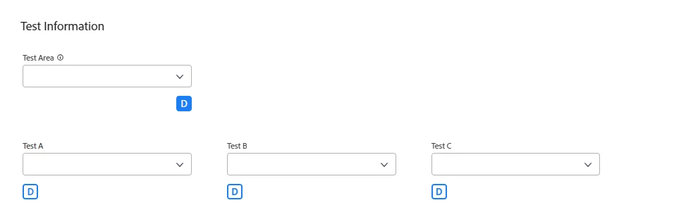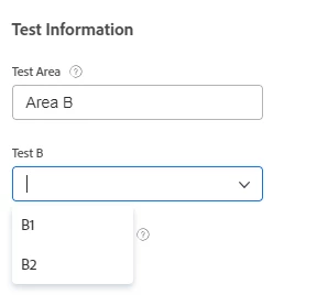 Hi. I have a custom form with 2 dropdown menus (Test Area & Test A, B, or C) & display logic. The second dropdown (Test A, B, or C) that appears is based off the user's selection from the first (Test Area). For example, if Area B is selected in the first dropdown then a second dropdown (Test B) will appear with selections B1 or B2. I created a calculated field with the logic below on my custom form to display a field on my custom form to show the letter of the area selected for reporting purposes; however, on a report it just appears as text.