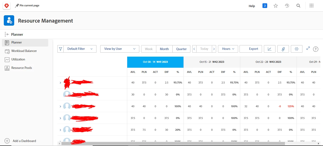 I am trying to extract the Planner data of the Resource Management through Workfront API but am not able to do so.