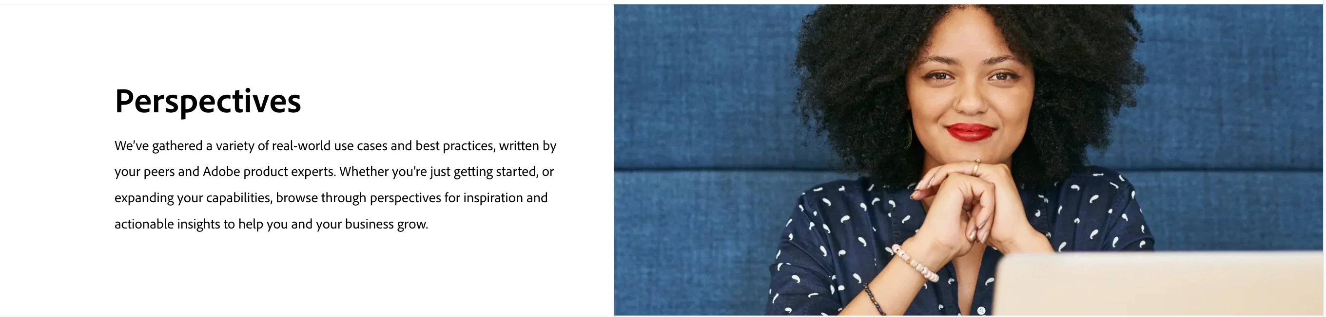 Perspectives is a dedicated space on Experience League featuring content written by expert Adobe users and internal Adobe product experts. Articles focus on real-world use cases, industry best practices, strategic tips and tricks, actionable insights, and technical guidance for using Adobe DX products—including Workfront.