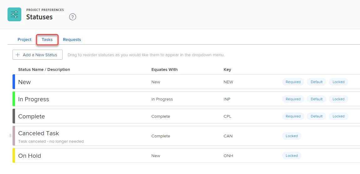 Description - It would be helpful to have an On Hold (ONH) status for Tasks like there are for Projects and Requests.