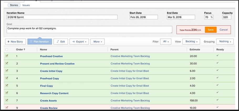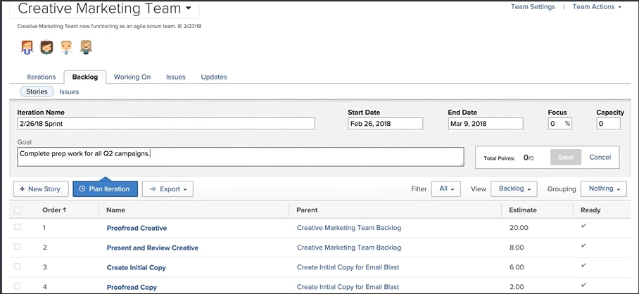 How would you like the feature to work - When a user wishes to plan/create a new iteration from the Backlog tab, the user can click on the "Plan Iteration" button and a new section appears above the list of stories. The user can enter the necessary iteration information (name, start date, end date, focus, capacity, and goal). The user can also see in the same section the total capacity available for the iteration (capacity x focus). The user can then go through the list of stories and check/uncheck work. If the user selects stories that exceed the total available capacity for the iteration, the stories that exceed are highlighted in red in the backlog. Bring back the previous Workfront behavior as shown in the video on the following Experience League page - Plan and create an iteration | Adobe Workfront.