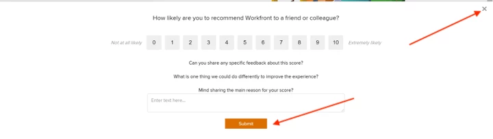 • You can request that your account or specific license levels, do not get served the Workfront surveys through the following process: