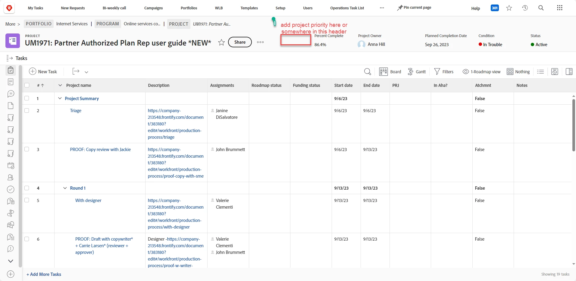 Project Priority - add to project header customization list