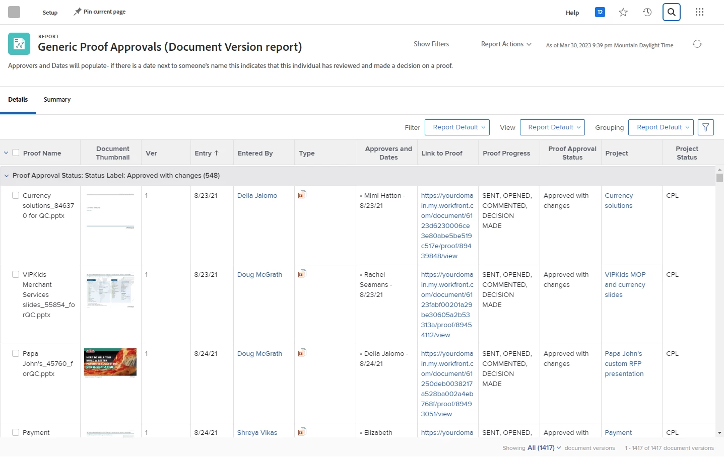 Proof Approval Reporting Examples