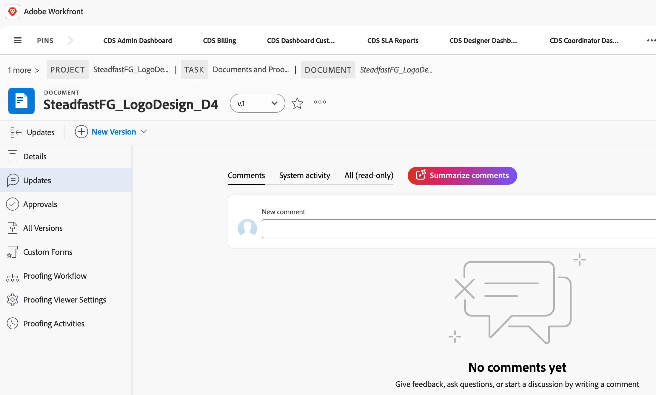 The message is not showing in the project or document updates. This would be a huge help for my team to have those messages flow into the updates of the document and project.