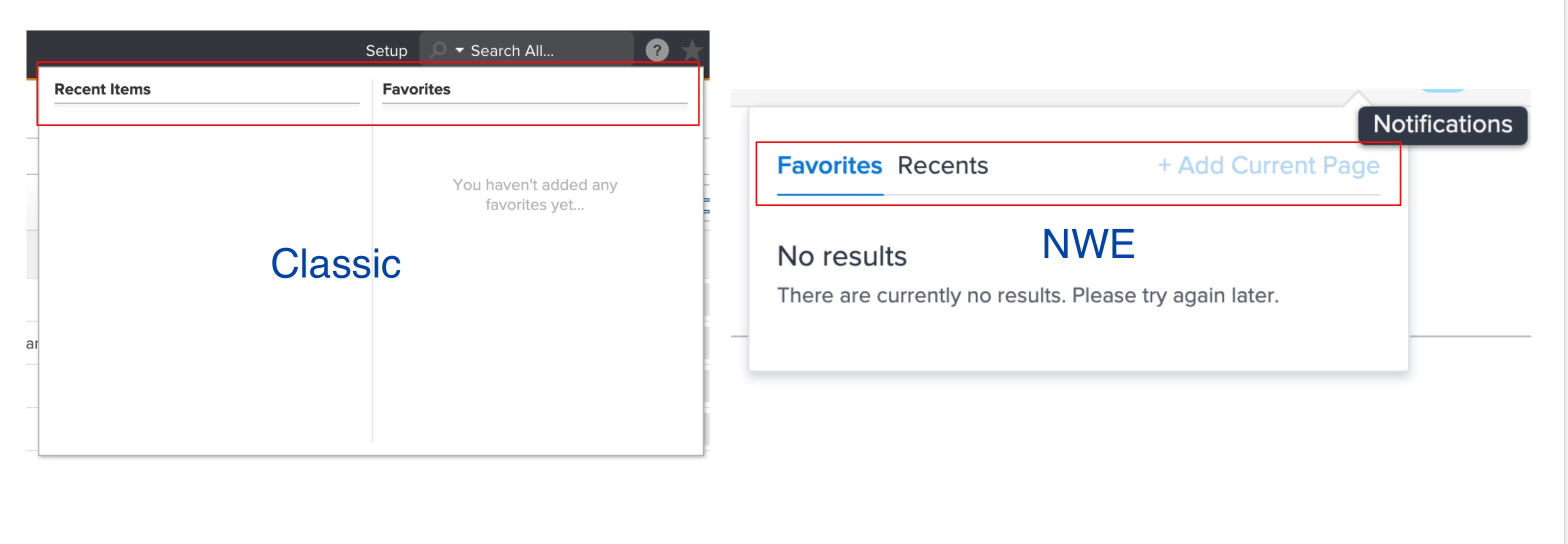 In the new Workfront experience, it is Favorites and Recents.