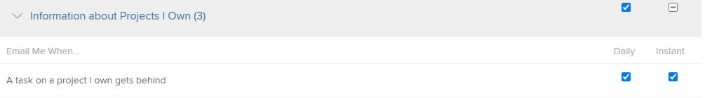 I have the notification shown below activated in hopes of certain project owners or sponsors to receive notifications when a task in their project falls behind. It does not seem to be working so I am looking for some alternatives without having to build out an automation in Fusion...