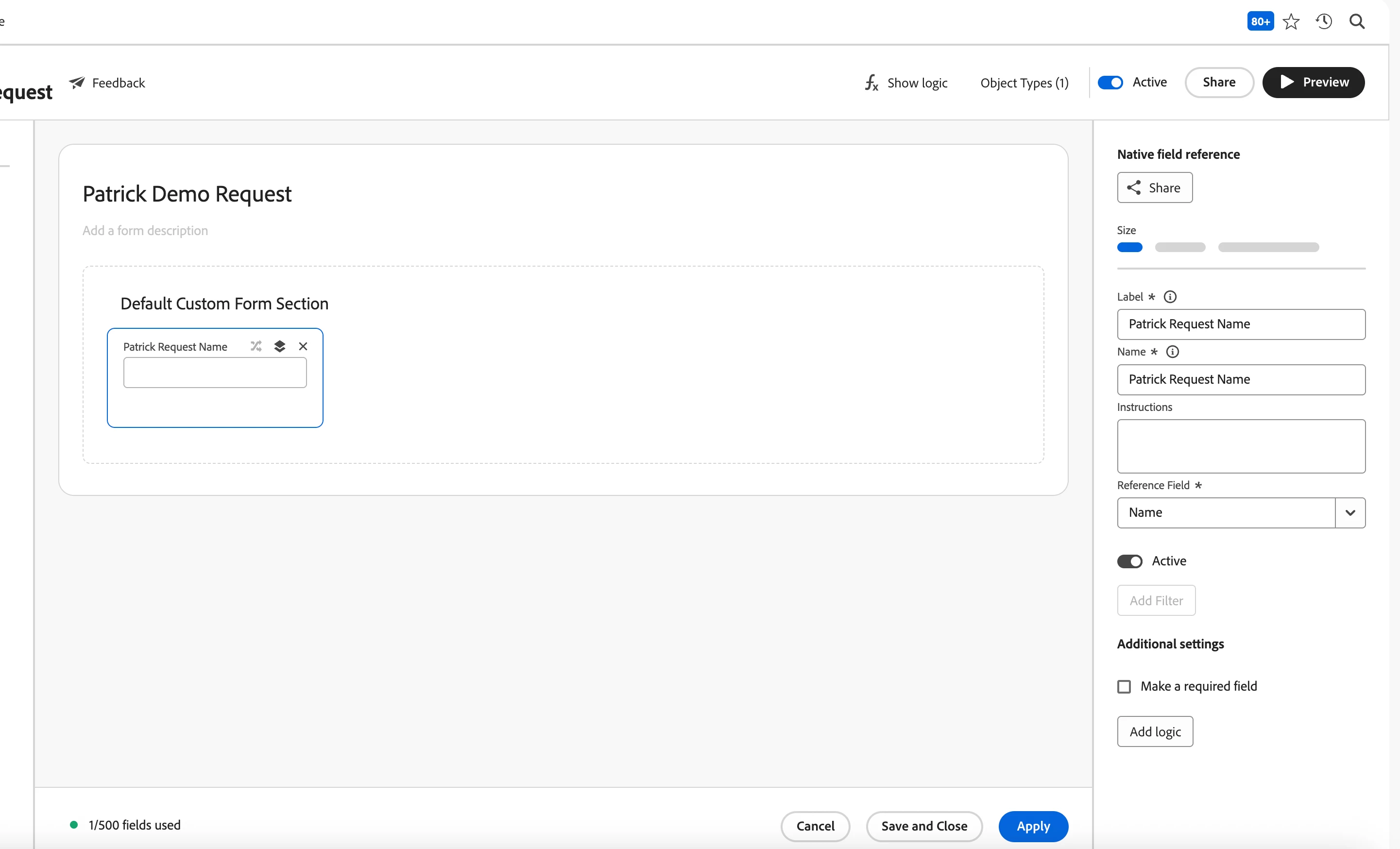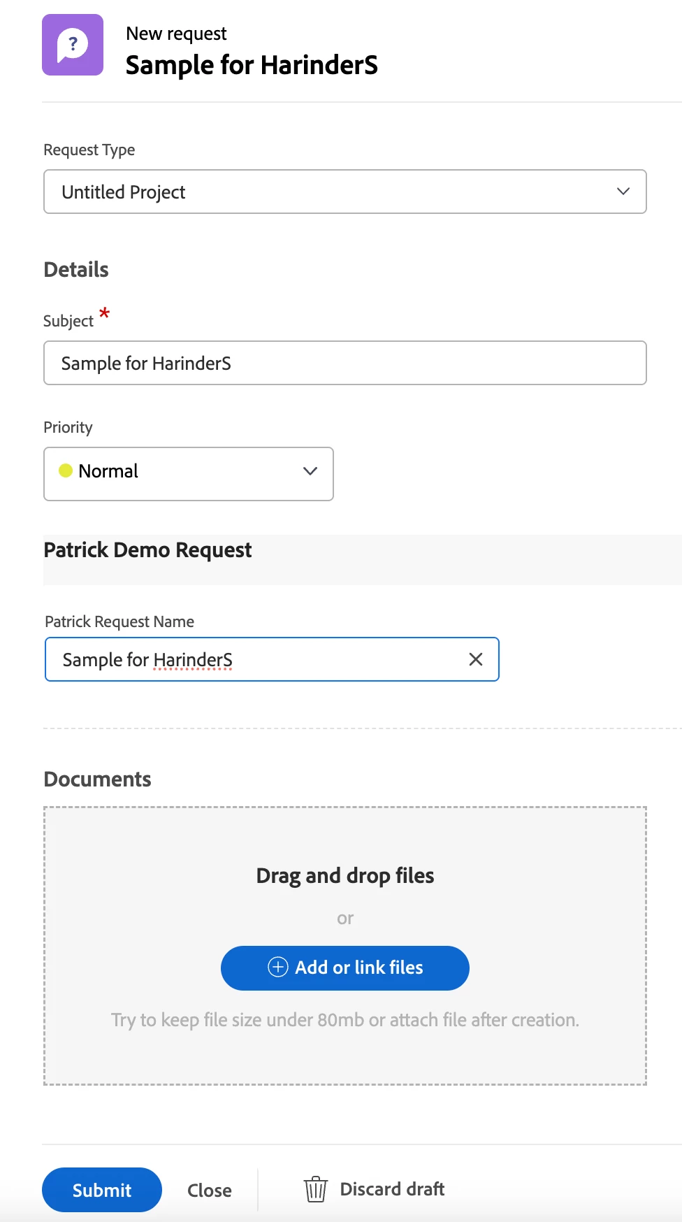 There should be a capability to either remove or disable the native Subject filed in Workfront request flows. If removal or disabling not possible at least should have capability to either modify its name or either move it to a different location on the form or within embedded custom form.