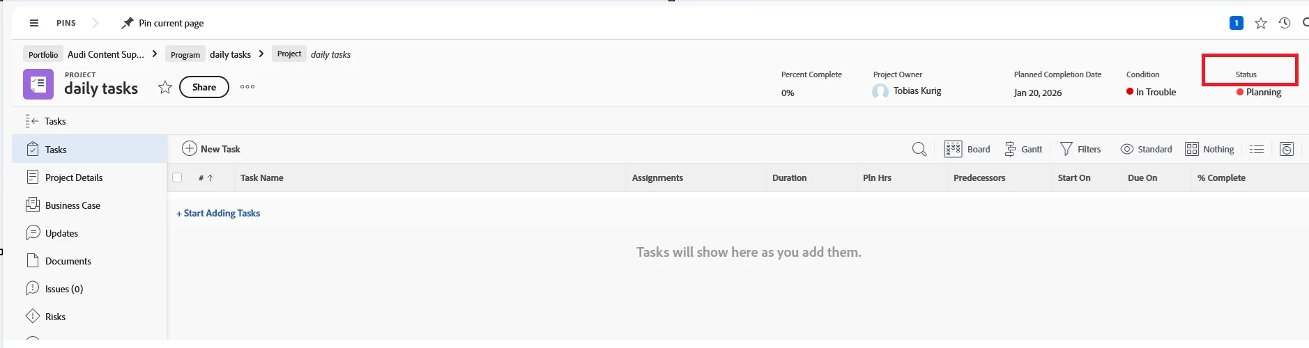 Can you please confirm whether it is possible to rename the default “Status” field label at the Project and Task levels?
