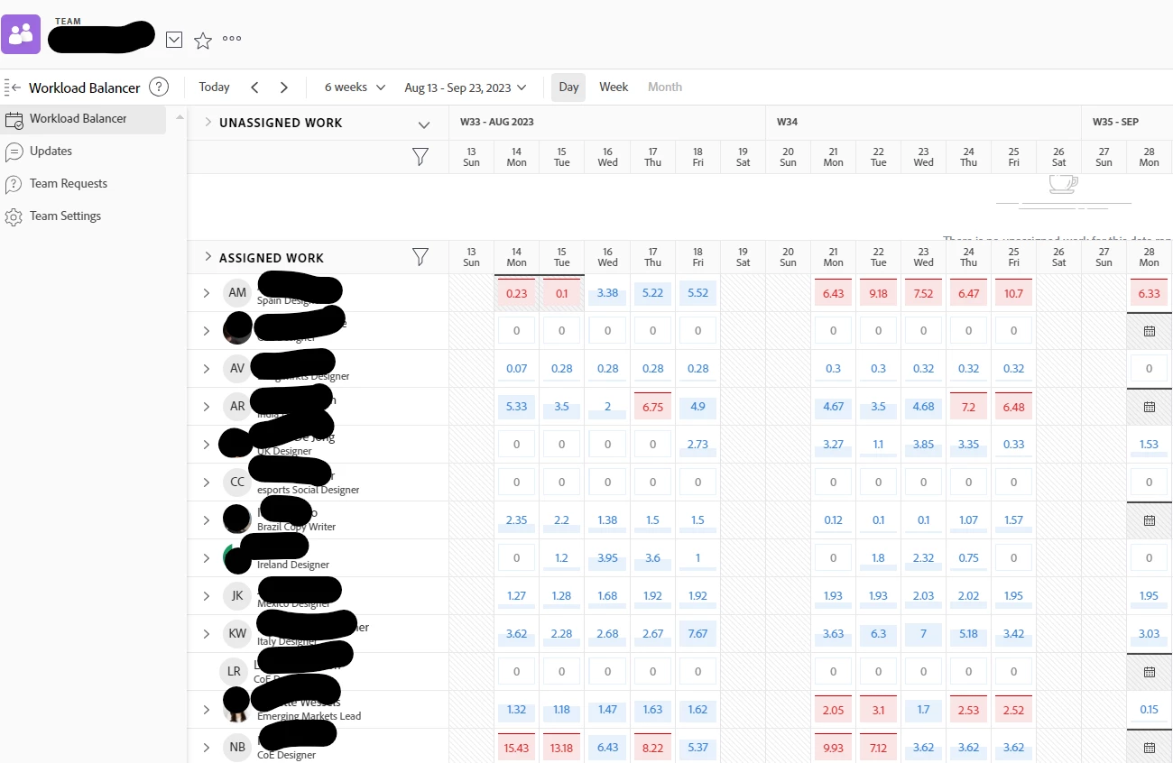 We use Resource > Planner for this. There are some limitations and criteria to make planner work but we like that it shows available, planned, actual and % allocations for users.