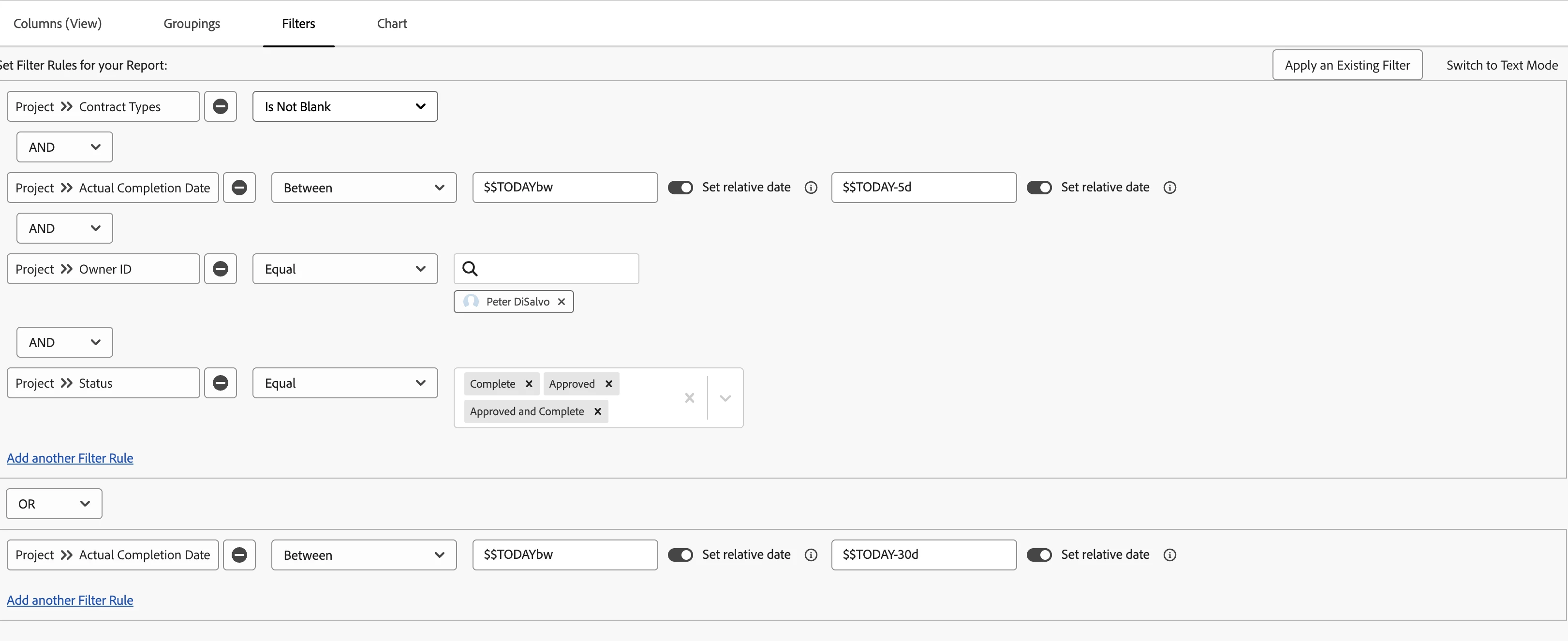 Your current report is working for both of your filters(one set above the OR and other set below it)