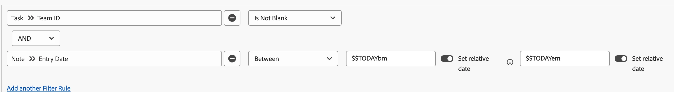 Is there a way to create and generate a report for how many times a Team tag is made in a Project or Tasks Updates message? In the report, I also want to add additional column fields to include information about the Project or Tasks.