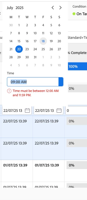 Hello, I have had a number of reported issues where users cannot allocate the correct start time to tasks and get an error message (see attached). I would love assistance on how to troubleshoot and resolve this other than checking the timings setting are correct on their computer and workfront. Many thanks