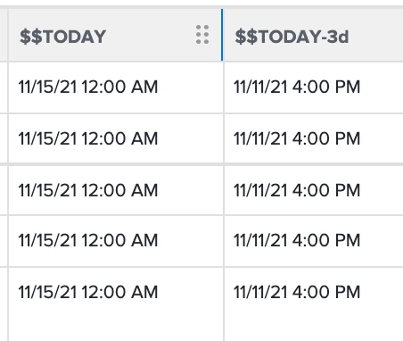 on a Monday morning why would I not pull in any results from Friday? When I change to $$TODAY-4d I get results so I know there's data there. I know it's counting the weekend days but that doesn't explain why it wouldn't pull anything in since Friday is technically 3 days back from Monday. I appreciate any insight. Thanks!