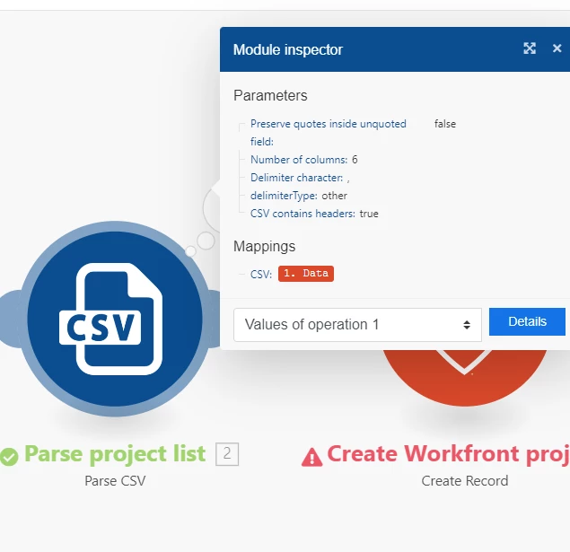 Note: I have attempted deleting and re-entering/re-saving the module "Create Workfront project" a few times without luck.