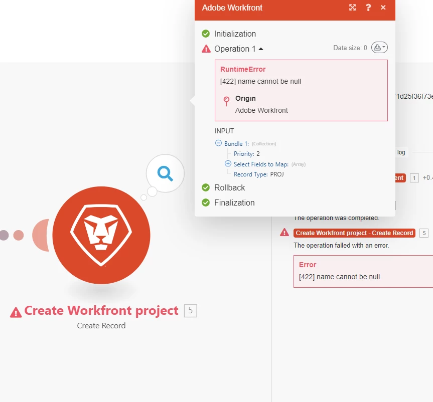 RuntimeError [422] name cannot be null (Adobe Workfront Fusion)
