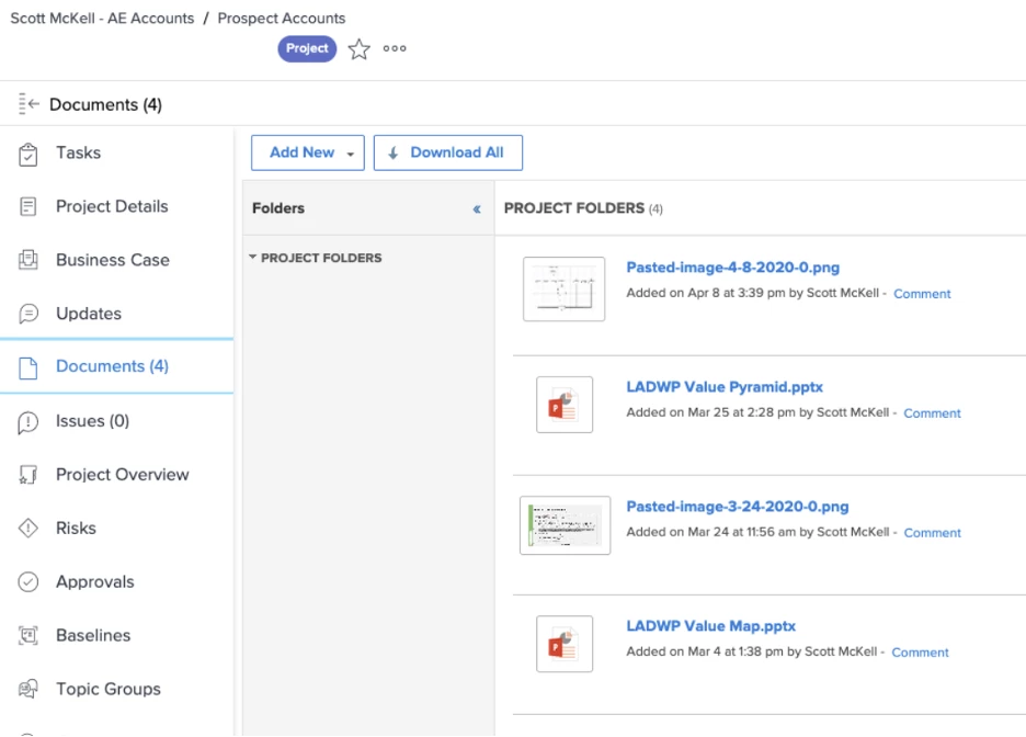 I use Workfront to manage 2 things – my existing accounts and my prospect accounts. With existing accounts, there are always things we need to stay on top of from account plans to value pyramids to plans on how we can expand these accounts with Workfront. With a prospect account, there are always tasks and actions to be done to move the prospect forward. Ideally, they will follow a sequence of events from the first conversation to the close of the contract.