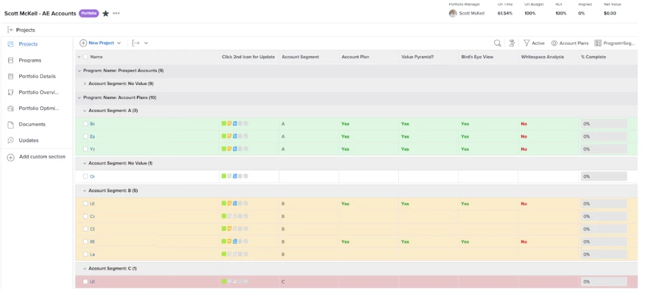 I created a custom view where I’m able to track progress being made to my account plans inside of my own portfolio.