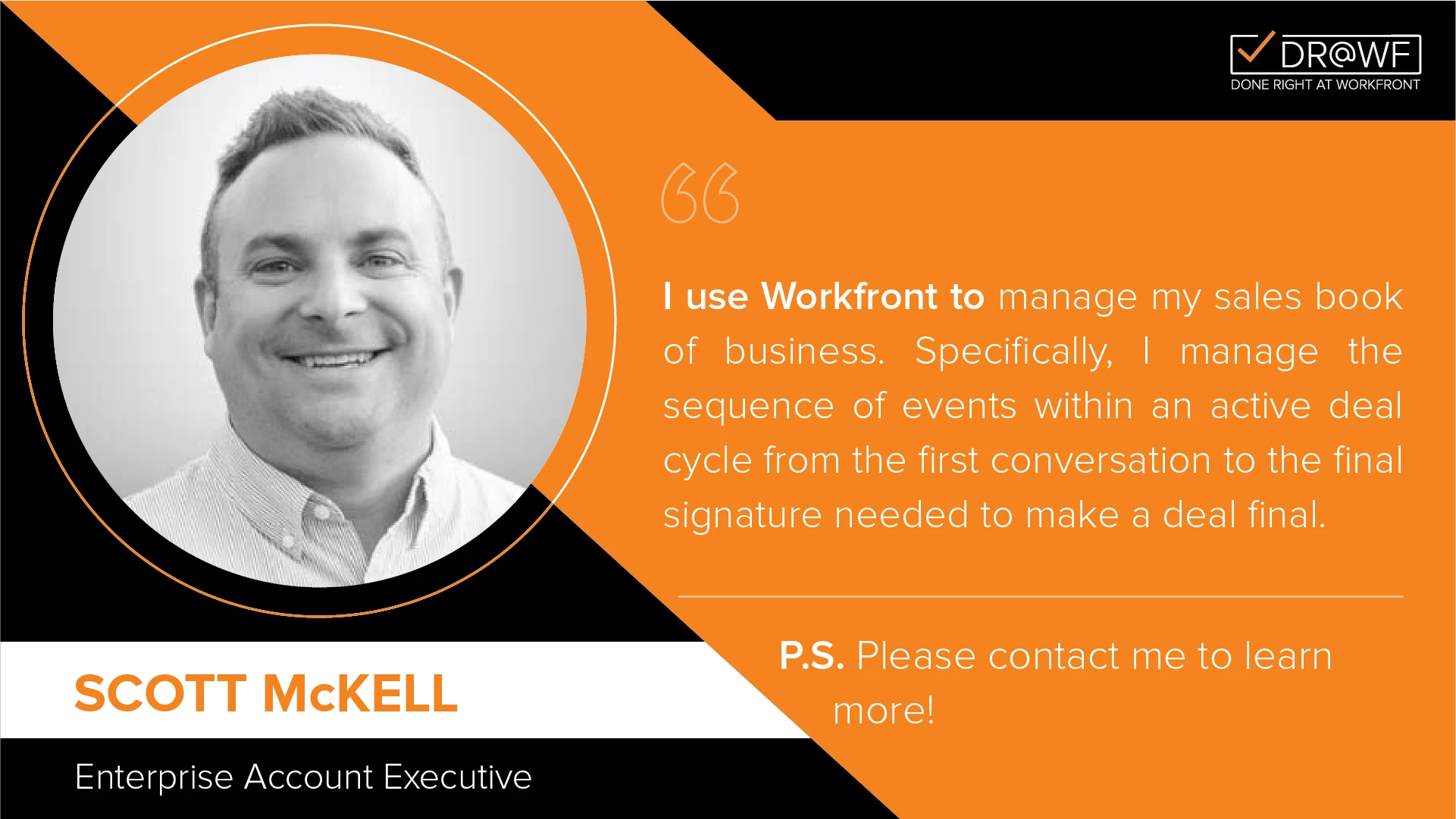 As an Enterprise Account Executive, I manage my accounts in Salesforce and manage the work related to those accounts in Workfront.