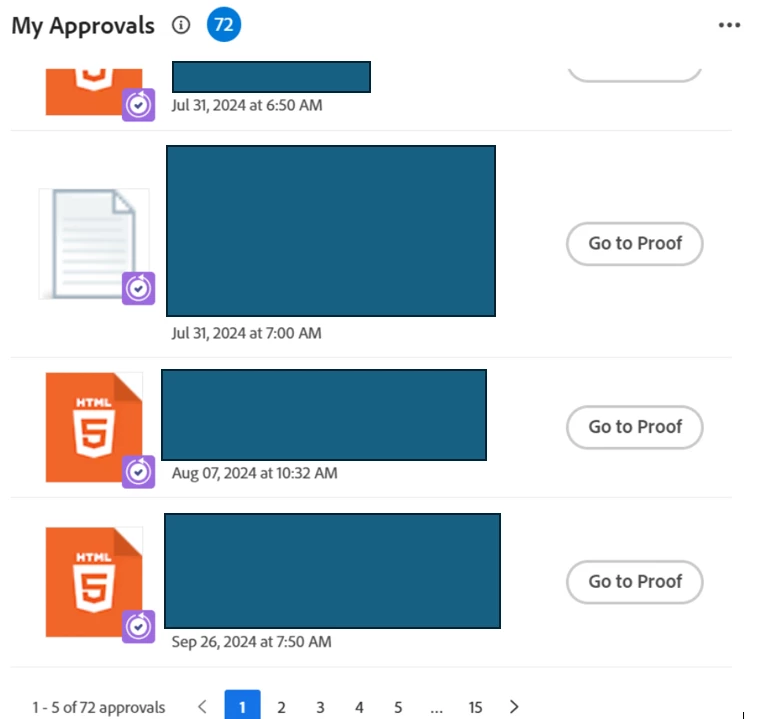 Sorting of proof approvals from newest to oldest in Adobe Workfront Homepage
