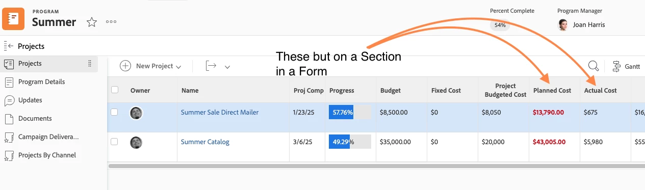 SUM Total Cost and Planned Cost for all projects under a Program in a Custom "Program" Form