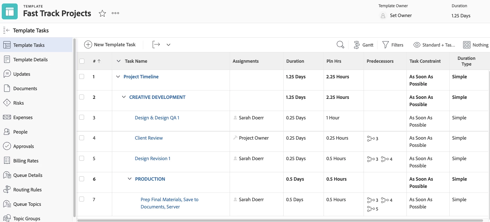We have a task template that is pre-assigned to a design to quickly work on urgent / quick turnaround requests.