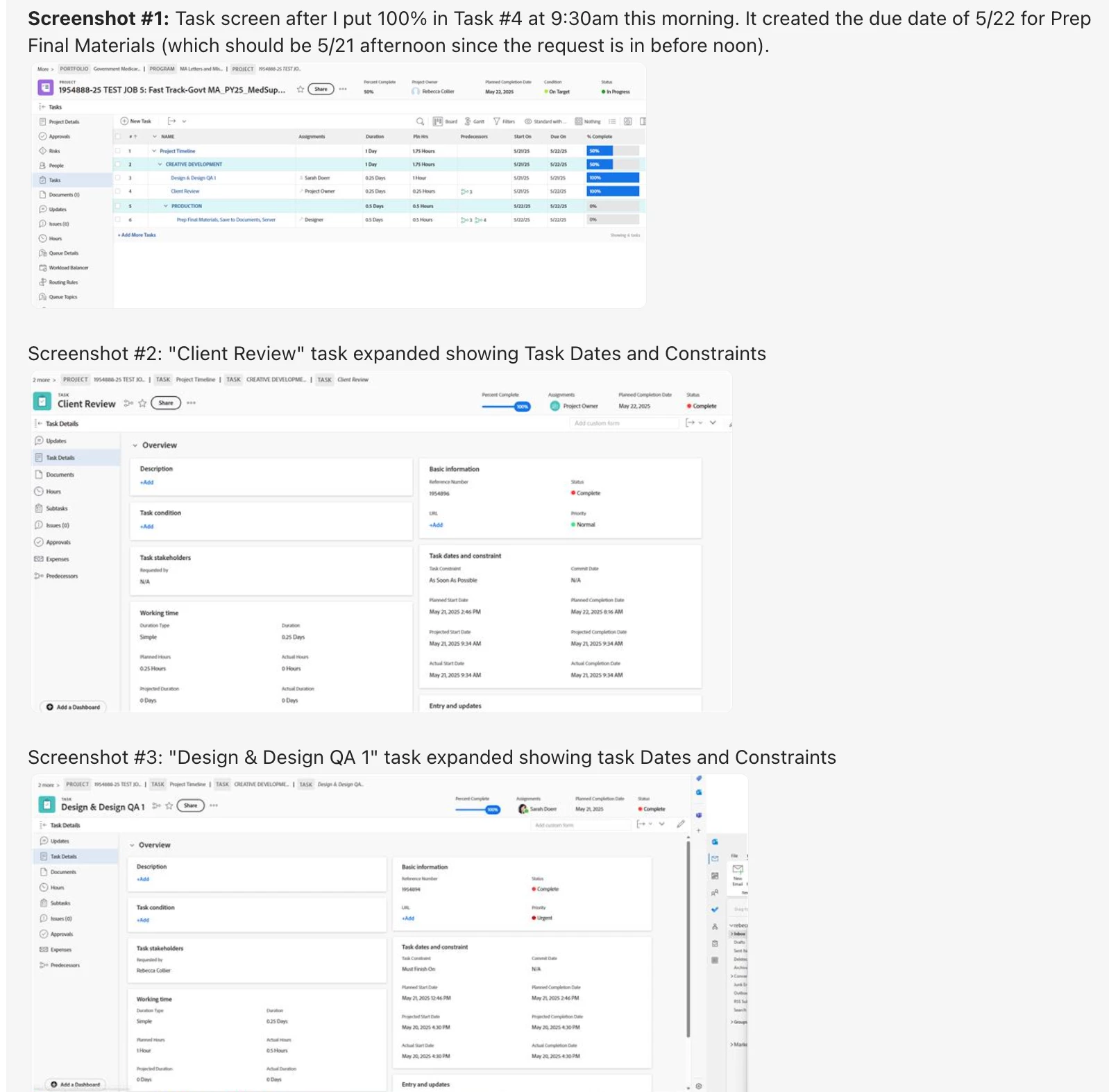 The template is also set up so that if a project is submitted AFTER 1130 am, all tasks will be assigned NEXT business day.