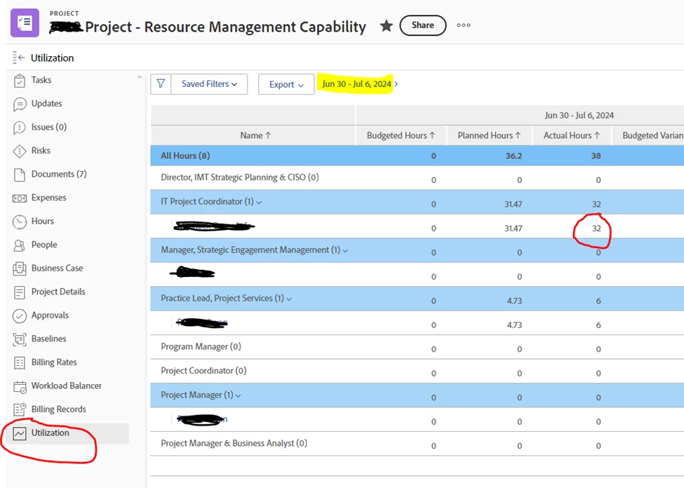 But when you view it in Utilization or resource management dashboard, the 8 hour logged is not pulling to the resource management or utilization screen, is showing a total of 32 hours instead of 40 hours. This is very miss leading when you are trying to account for the total hours logged by resources.