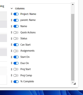 Hello, I recently added two new users and assigned them to the same layout template as a multiple of other users. The new users don't have the column filter in the project and task widgets like the others do. I can't figure out why. Does anyone have any insight as to how to have the column added back in? I attached a screenshot of what the new user has, and a screen shot of what the column should be. Thank you.
