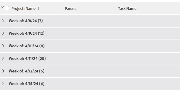 For example, I have tasks with a planned start date of 4/5/2024. I want the "Week of" Grouping to display "4/1/2024", as that is the Monday of the week in which the week will be done, but right now it shows "3/31/2024".