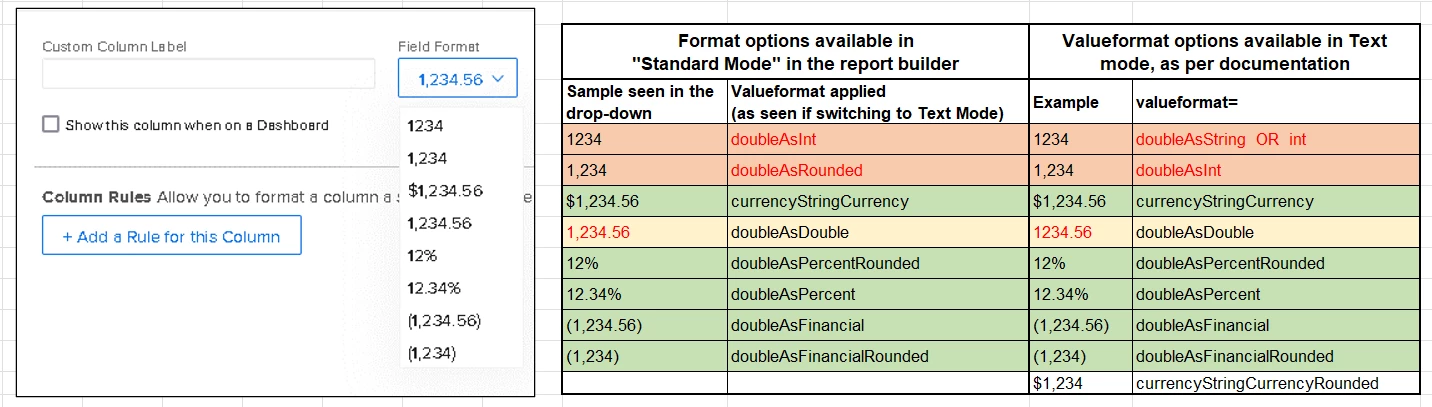 Value format "doubleAsString" not currently available in standard mode reporting
