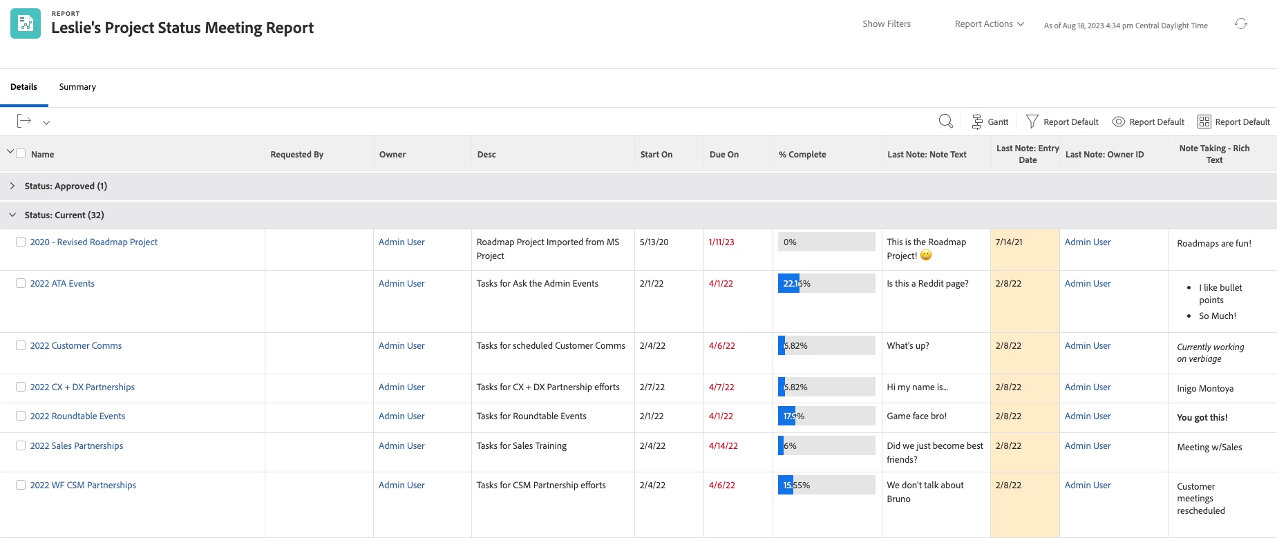 - Last Note Report