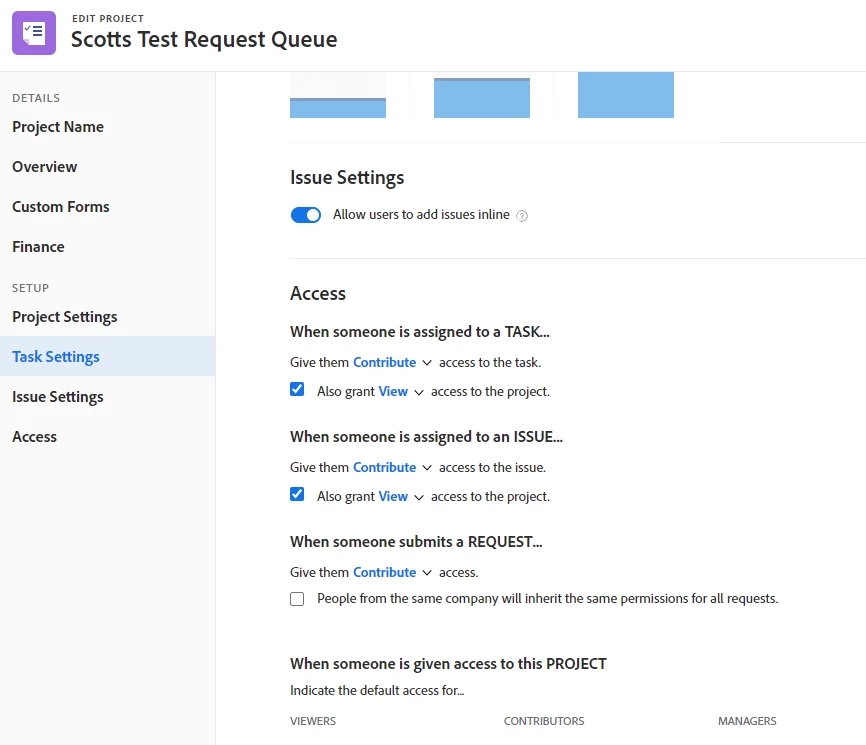 When creating a request in the request queue, it is assigned to the team with a 'Contribute' access level. How can I change it to 'Manage' for newly created requests in that queue.