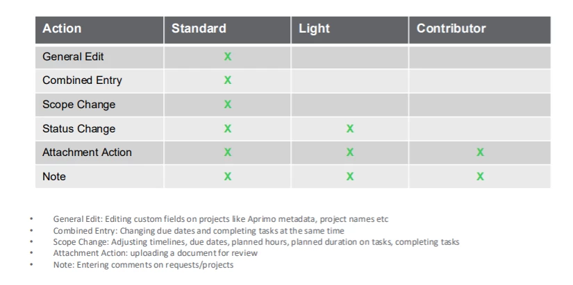 If a user with Standard access has never performed a Task or Project status change or not been an assignee (excluding comments, document uploads, or approvals), we’re considering moving them to a Light/Contributor license.