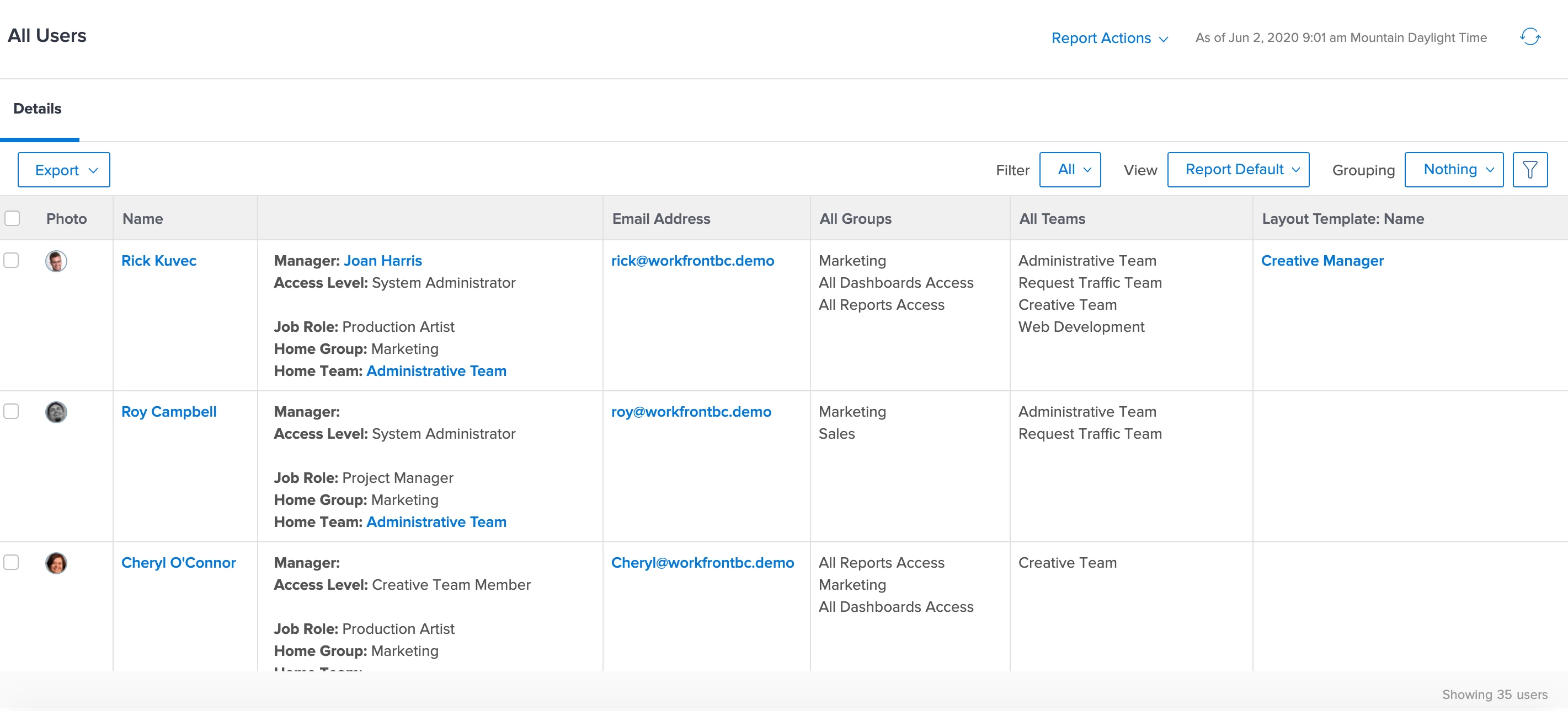 To connect with other system administrators on best practices around user management, post a question in the Community forum on Workfront One.