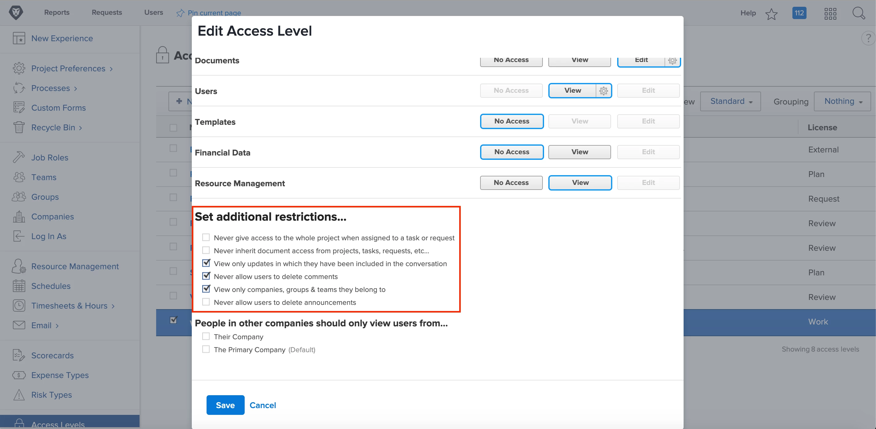 PRO TIP 1: Once you have defined your access levels, make sure you go through the additional restrictions section to ensure that appropriate checkboxes are selected, most notably “Never allow users to delete comments.”