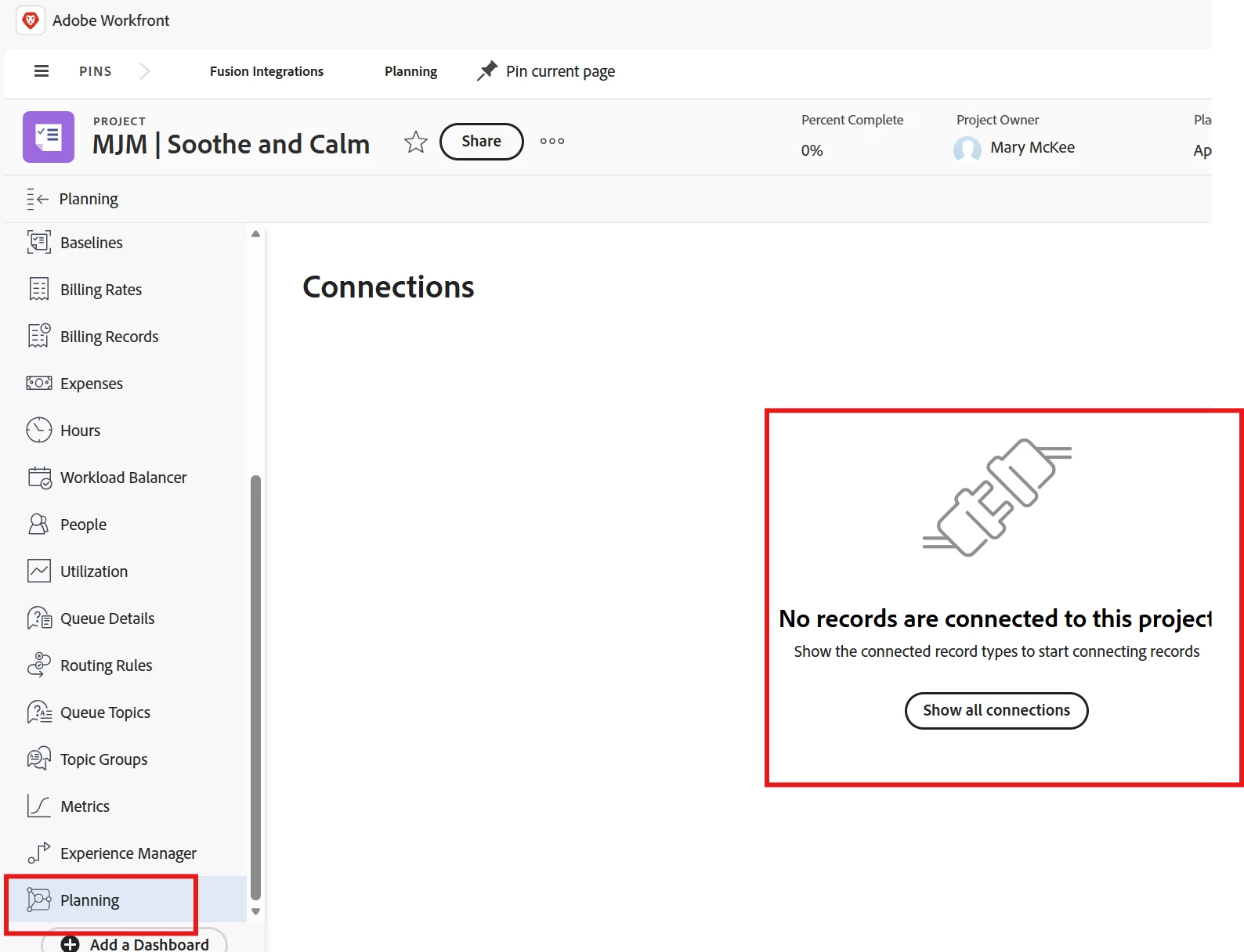 Workfront Planning - Connecting Project Record