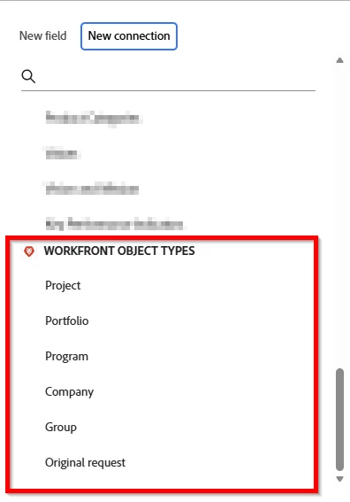 Does the Workfront Planning connection only support the objects listed below? not Tasks and Issues?