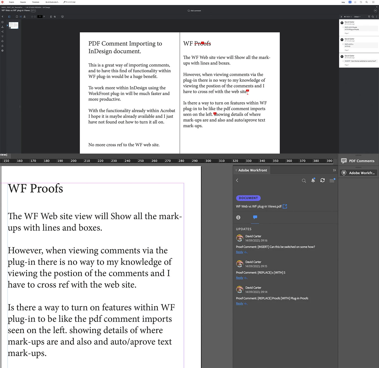 I am looking to see if there is a function within workfront similar to the Acrobat PDF comment importer within Indesign.