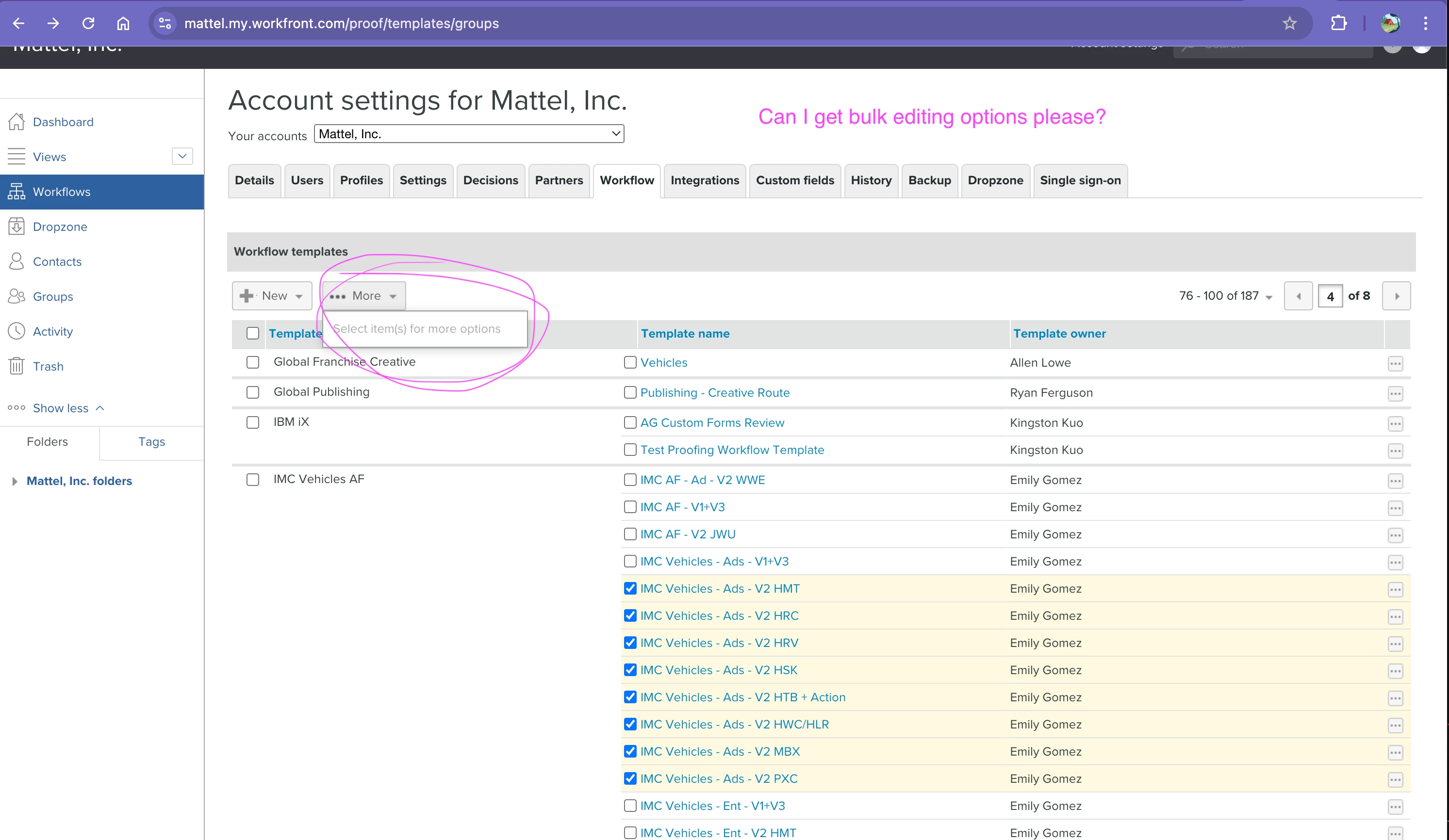 Hello Adobe...Will you please create and provide the capability to bulk edit workflows within Workfront Proof.