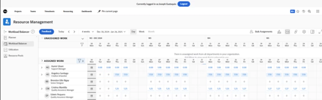 I'm stumped on an issue with a user, but my gut tells me its a device setting rather than a Workfront issue. When the user view his WLB, his dates slip (each day think) and roll into Saturday as shown below.