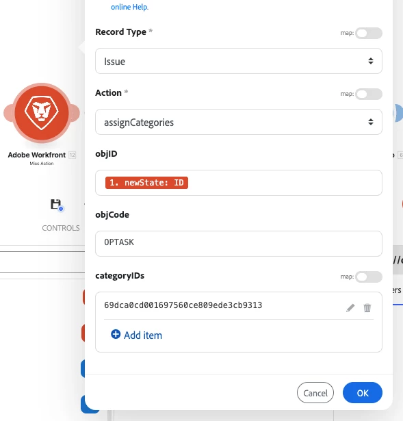 The operation failed with an error. [422] APIModel V22_0 action assignCategory does not support argument named alreadyAttached