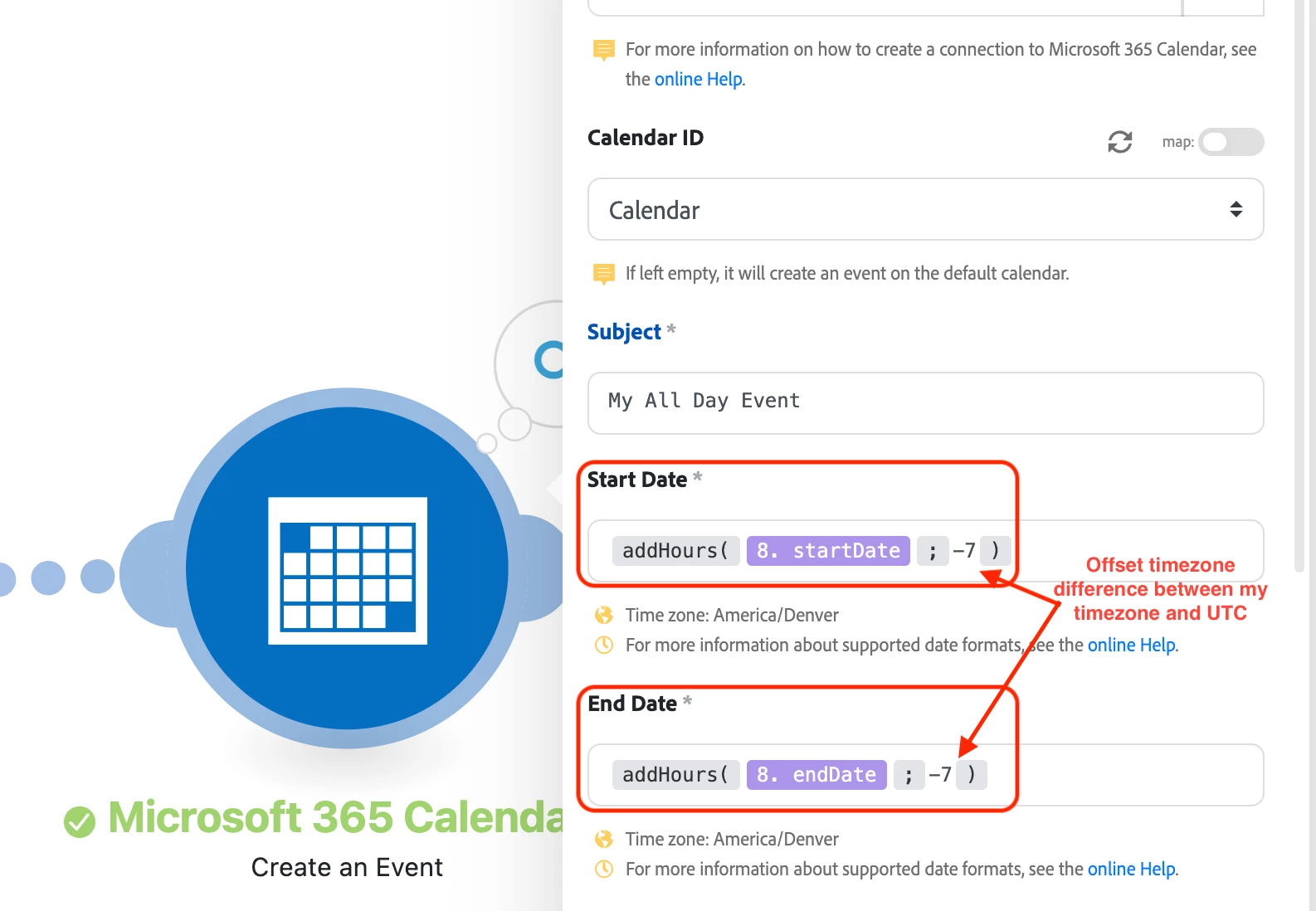 Can the Microsoft 365 Calendar module be configured to create events so that it shows in your calendar as an all day event?