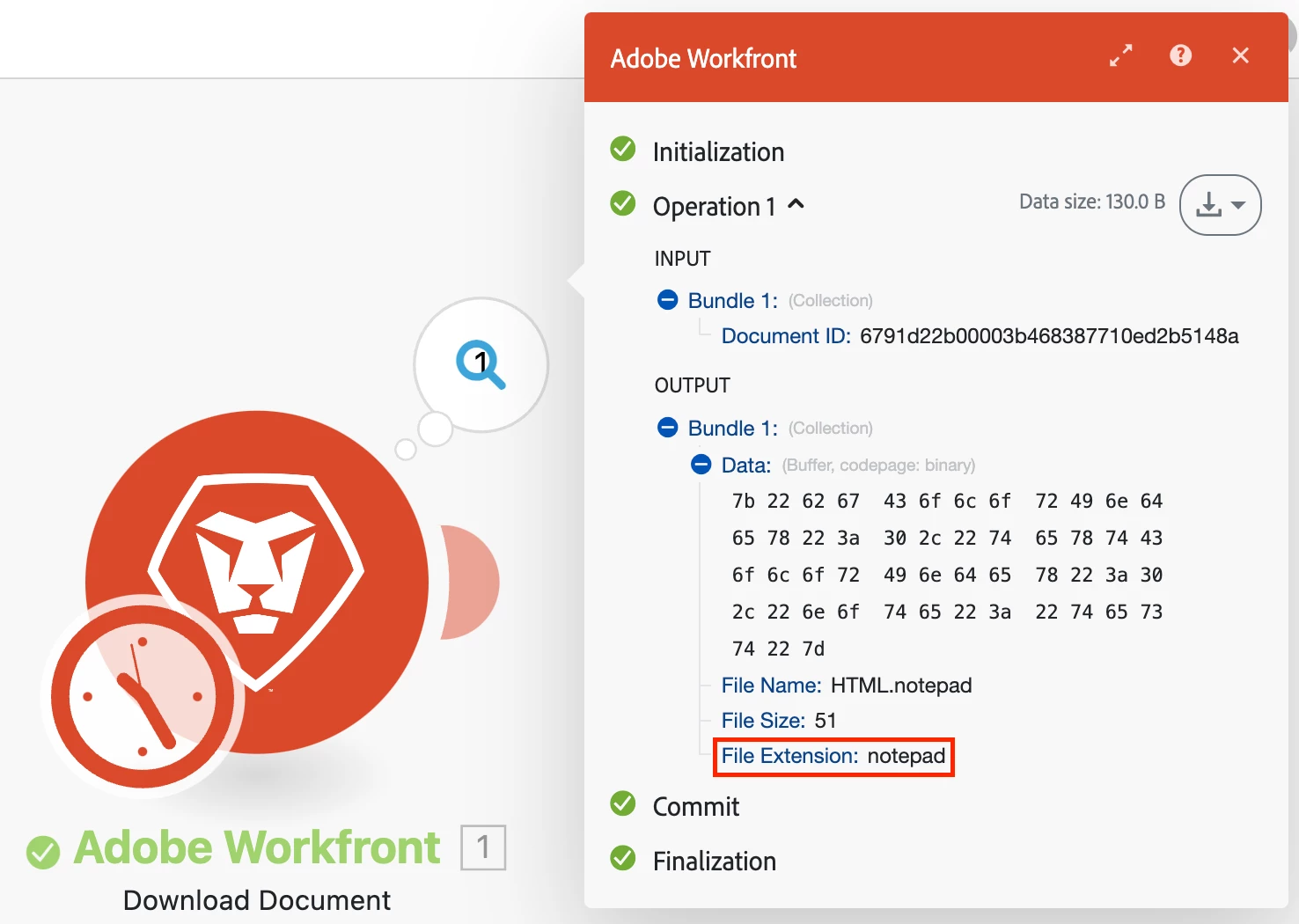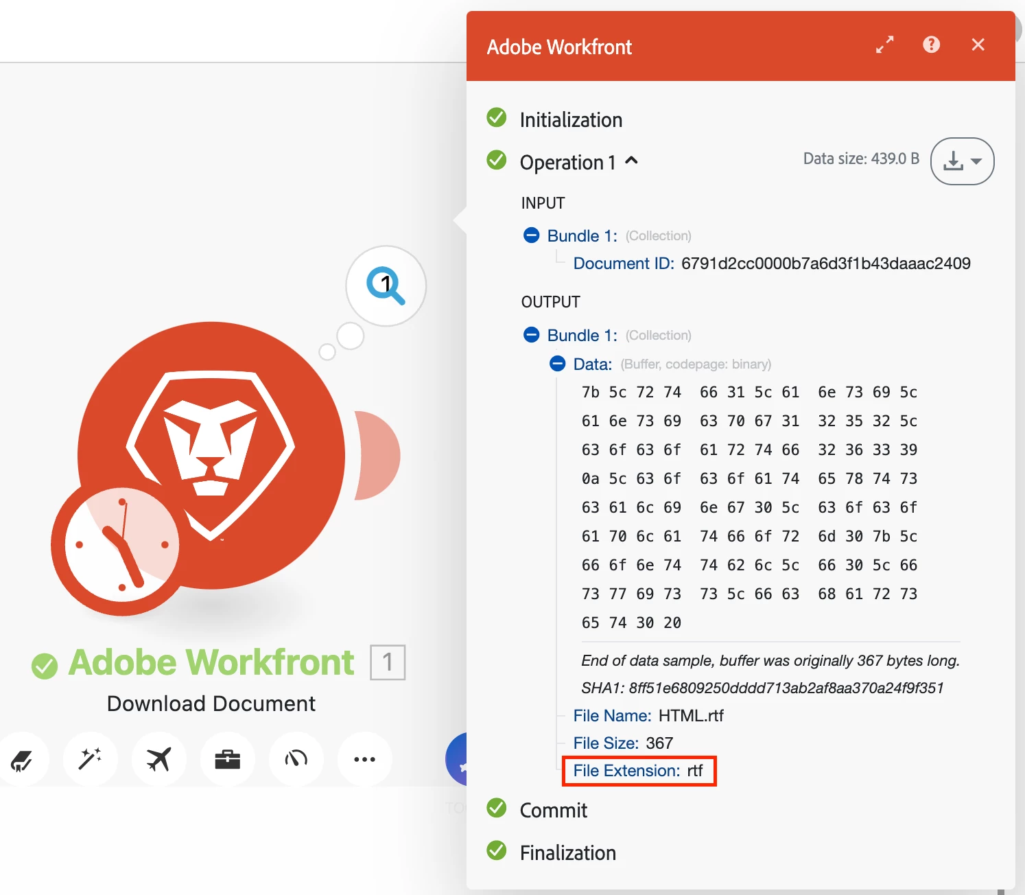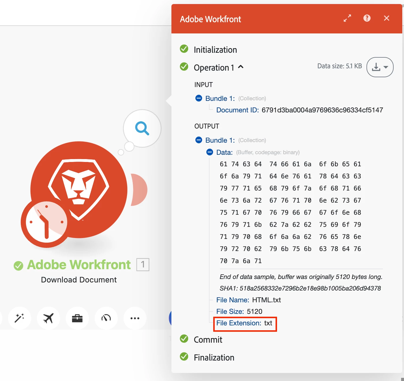 https://experienceleague.adobe.com/en/docs/workfront-fusion/using/references/apps-and-their-modules/adobe-connectors/workfront-modules#:~:text=The%20module%20returns%20the%20document%E2%80%99s%20content%2C%20filename%2C%20file%20extension%2C%20and%20file%20size.%20You%20can%20map%20this%20information%20in%20subsequent%20modules%20in%20the%20scenario.