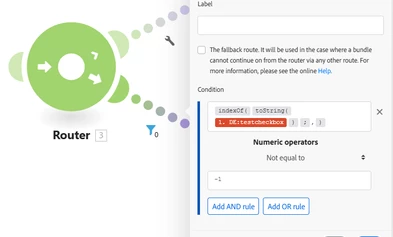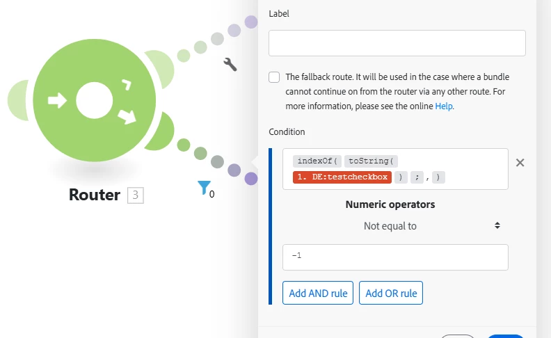 Currently trying to setup a filter in one of my scenarios. I've created a checkbox field that has several different values that users can select upon request time. If there is only one value selected then I would like Fusion to route it to another setup of modules. If there is multiple values selected then it would go a different route.