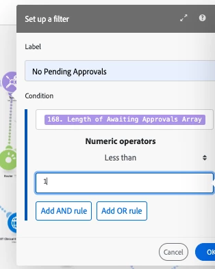 --- then a filter for the route to continue only if the variable is less than 1 :