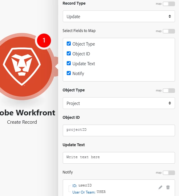 Fusion: Project Status change triggers an Update to a specific user