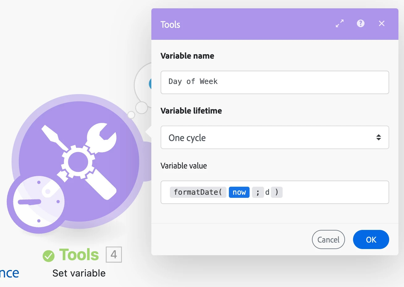 there's an excel that I am having and that I am creating requests based on it, and I would like to set some filters up so that not all requests within the excel are created on the same day, therefore I have introduced a column (days of the week) so that I can filter by it. Now here comes my issue: I am unsure how to filter by "today". In workfront we had the $$TODAY variable that we could use, I see in Fusion there's the "now" variable, but I cant seem to make it work, I ve tried pretty much all the operators and conditions and I am out of ideas. I could make like 5 scenarios for each day of the week but I believe there should be another way of doing it within the same scenario.